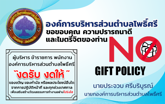 - นโยบายไม่รับของขวัญและของกำนัลทุกชนิดจากการปฏิบัติหน้าที่ (No Gift Policy)